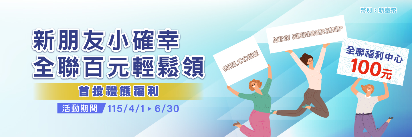 「首次投保」抽~全聯福利中心即享券 100元