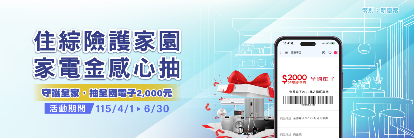 住宅綜合保險加碼獎~2,000元 全國電子即享券